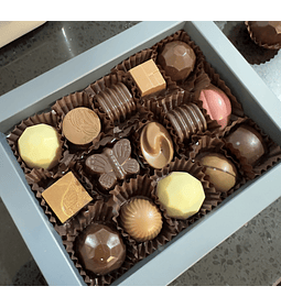 Caja de 20 trufas surtidas: Sabores: - Manjar nuez y Chocolate blanco, cubierta en semi bitter - Trufa limón ( pie de limon), cubierta en Chocolate...