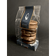 Alfajor con galleta, relleno de manjar, cubierto con chocolate bitter 55% cacao.